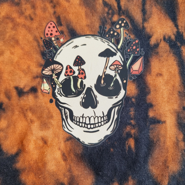 - Mushroom Skull Design on Tie Dye Fabric